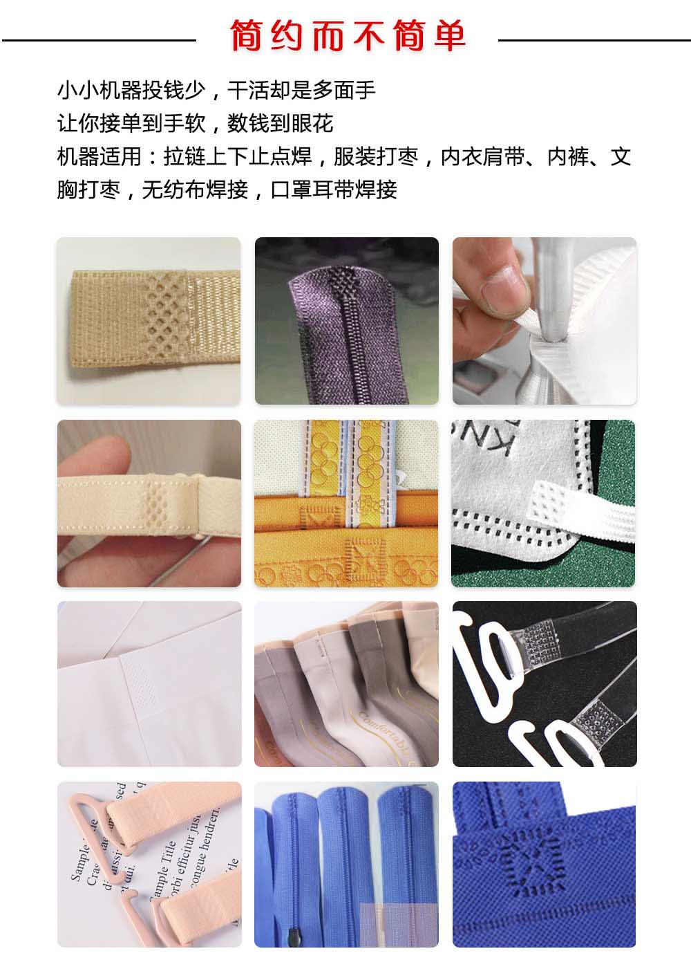 無(wú)論是燙拉鏈尾、拉鏈頭,還是織帶絲帶點(diǎn)焊,細(xì)繩帶疊焊,甚至內(nèi)衣內(nèi)褲和鞋面的定位點(diǎn)焊,您都需要一臺(tái)穩(wěn)定可靠的超聲波點(diǎn)焊機(jī)。讓我們來(lái)介紹一下這款業(yè)內(nèi)公認(rèn)最好用,最穩(wěn)定的超聲波點(diǎn)焊機(jī)。