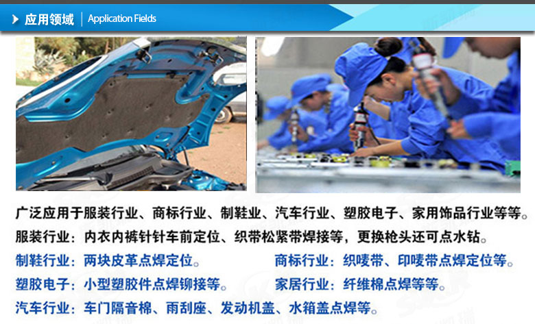 1.服裝行業(yè):超聲波手持焊接機(jī)可用于衣物上的商標(biāo)制作,如T恤、褲子等。精準(zhǔn)的點焊技術(shù)保證商標(biāo)不易脫落,提高了服裝的品質(zhì)和外觀。