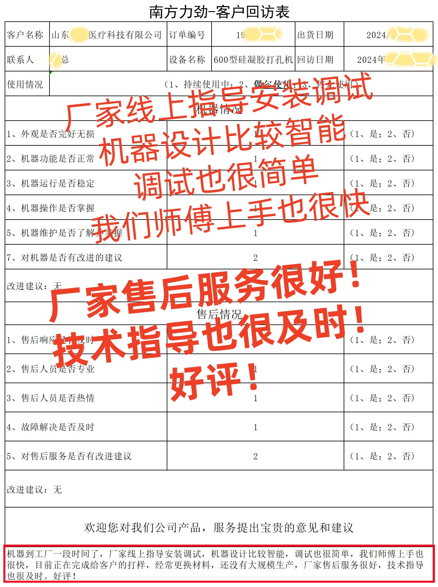 近日,我們收到了來自山東醫(yī)療器械行業(yè)客戶的高度評價,讓我們一同來感受他們與硅凝膠打孔機的精彩故事。