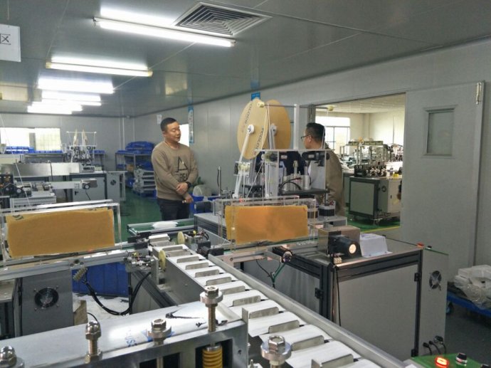 憑祥盛眾進(jìn)出口有限公司謝總一行來(lái)廠驗(yàn)收平面一拖二口罩機(jī)