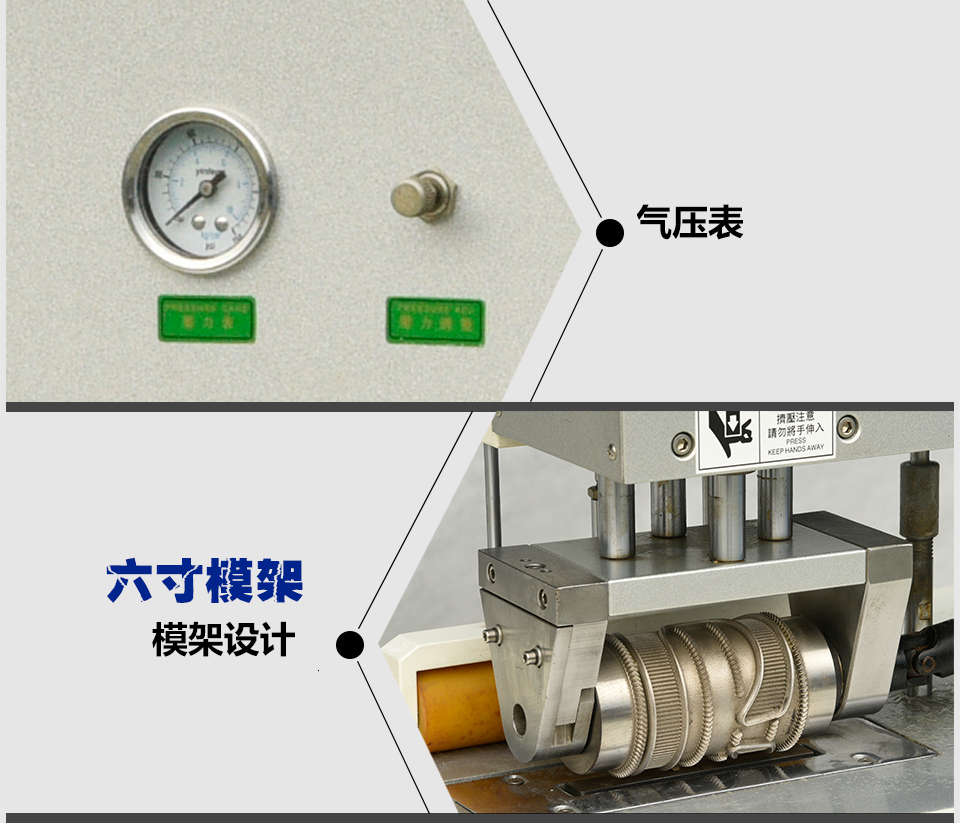 6.超聲波花邊機利用超聲波直接在材料上進行包邊,燙金,壓制圖形,根據(jù)不同面料、厚度調節(jié)功率。