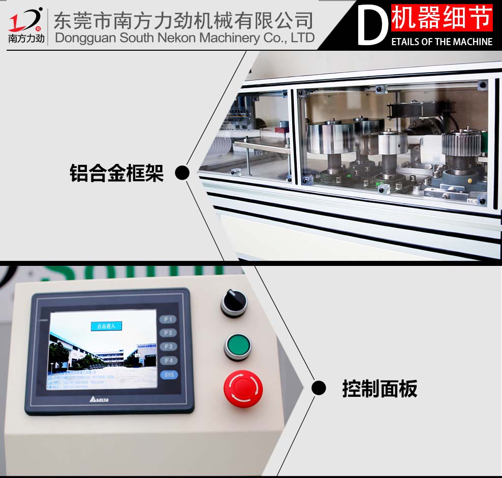 3:條形帽機采用全自動鋁合金機架,外形美觀不生銹,觸摸屏控制,剎車馬達(dá),噪音低。