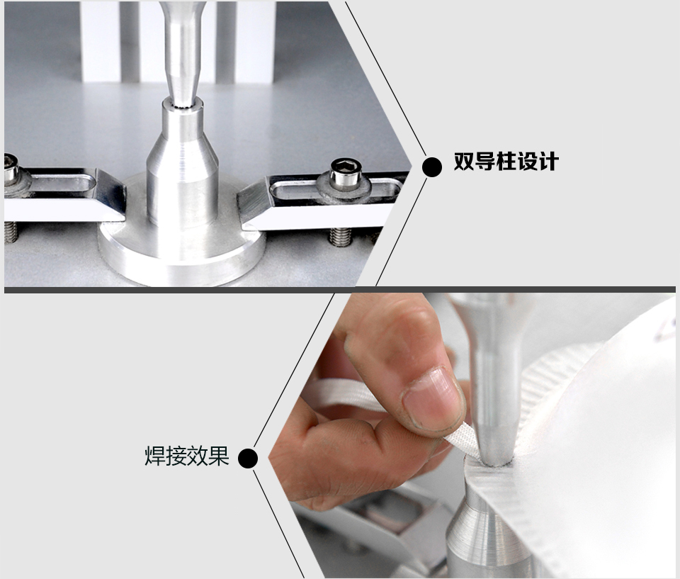 2.可用適用于拉鏈定位,拉鏈上下止,肩帶點(diǎn)焊,肩帶打棗,織帶打棗,超聲波打棗,橡筋帶焊接,織帶焊接,拉鏈燙尾,口罩耳帶點(diǎn)焊的焊接。