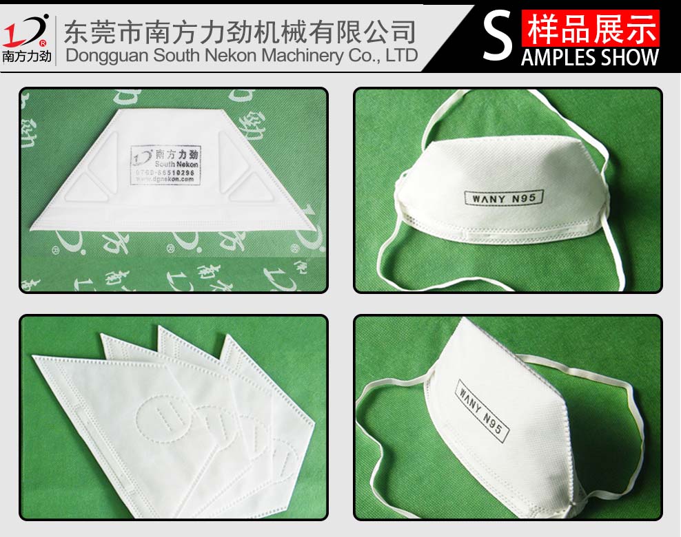 南方力勁全自動超聲波鴨嘴形口罩機(鴨嘴口罩制造機),是利用超聲波熔接的原理從而生產(chǎn)出適用于高污染工業(yè)用的鴨嘴形口罩的機臺。此機器口罩本體部分可使用4~10層的PP無紡布以及過濾材料(如:熔噴布、活性炭材料等),從而可以生產(chǎn)出達到N95,FFP2等口罩成品。且此機臺從入料到成品均為一條線自動化作業(yè):原材料自動入料,鼻線輸送系統(tǒng),且可將鼻線自動包折于無紡布內(nèi),自動折邊以及成品裁切,并可以自動附加呼吸閥孔。此鴨嘴形口罩機生產(chǎn)的成品,外形美觀;該機臺性能穩(wěn)定,產(chǎn)量高,良品率高,易于操作。