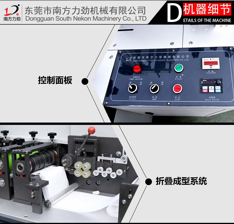 1.對折式折疊裝置,折疊準確度高且易控制,